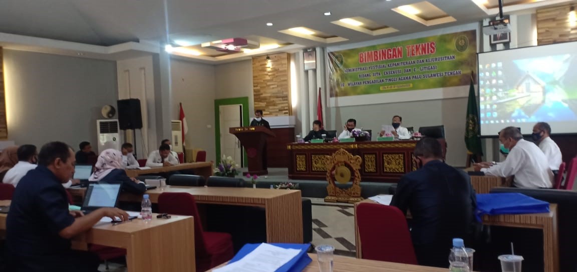 Pengadilan Tinggi Agama Palu melaksanakan kegiatan Bimbingan Teknis Yustisial Bidang Kepaniteraan dan Kejurusitaan di Lingkungan Peradilan Agama se-wilayah Pengadilan Tinggi Agama Palu. Sebagaimana dalam Surat Panggilan Peserta Bimtek Nomor: W19-A/1180/PP.00.3/IX/2020 tertanggal 02 September 2020 tersebut PA Bungku turut dipanggil untuk mengikuti kegiatan tersebut yakni Ketua, Panitera dan Jurusita hal mana kegiatan tersebut dilaksanakan mulai hari Senin sampai hari Rabu (14 s/d 16 September 2020) bersama dengan 10 Satker Pengadilan Agama Tingkat Pertama lainnya dengan total jumlah peserta sebanyak 45 peserta. Acara dimulai dengan Check In peserta dilaksanakan jam 13.00 WITA  bertempat di Hotel Paramatsu yang beralamatkan di Jalan Domba Kota Palu.