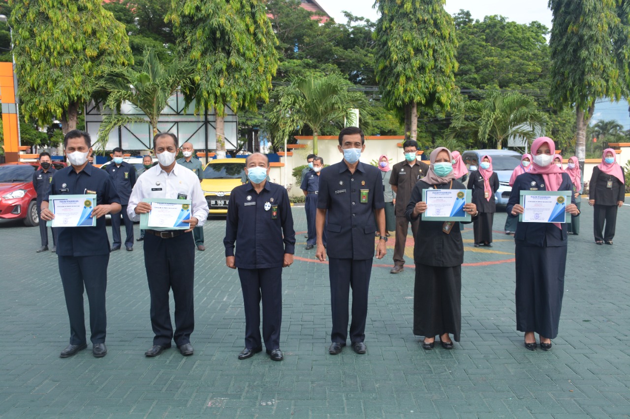 Terkait hal tersebut, Ketua PTA. Palu, Dr. Drs. H. Syahril, S.H.,M.H. didampingi Wakil Ketua PTA. Palu, Drs. H. M. Nahiruddin, S.H.,M.H. memberikan apresiasi dengan menyerahkan piagam penghargaan kepada 5 pegawai tersebut pada apel Senin, 7 Juni 2021 di halaman kantor Pengadilan Tinggi Agama Palu.